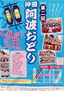 DATE:2026.4.17 お知らせ 第二回 神田阿波おどり 明日行われます♪ 2026年4月18日土曜日 神田平成通りにて開演いたします。 是非、見に来てください♪ #神田レストラン#神田ディナー#冷菜#中国料理#中華料理#麻婆豆腐#餃子#神田駅東口#炒飯#北京ダック#フカヒレ#東園#冷やし中華#冷やし担々麺#町中華#紹興酒#老舗中華#神田ランチ#レストラン